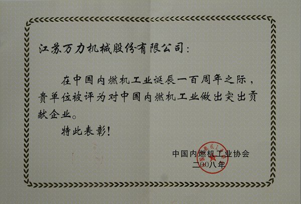2008內(nèi)燃機(jī)百年貢獻(xiàn)企業(yè)