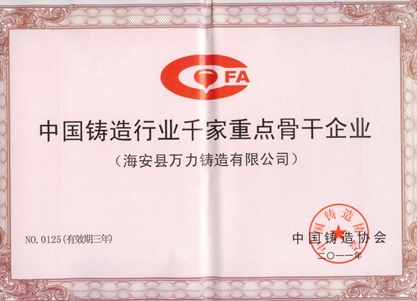 2011中國鑄造行業(yè)千家重點骨干企業(yè)